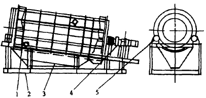 滚筒2.机架3集料斗4.传动装里5.托辊